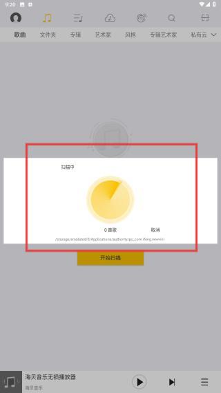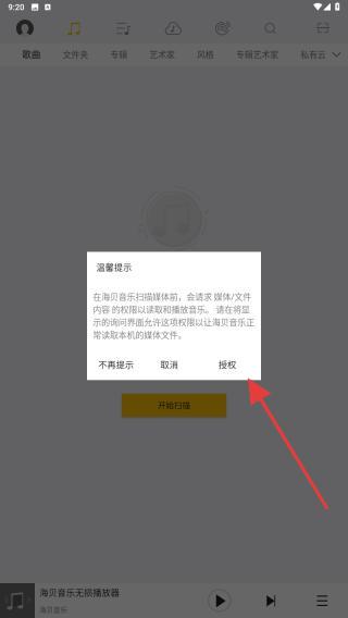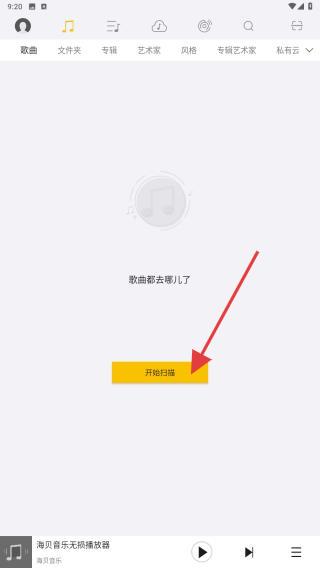 2、進(jìn)入音樂的姐妹內(nèi),點(diǎn)擊黃色字眼的開始掃描。