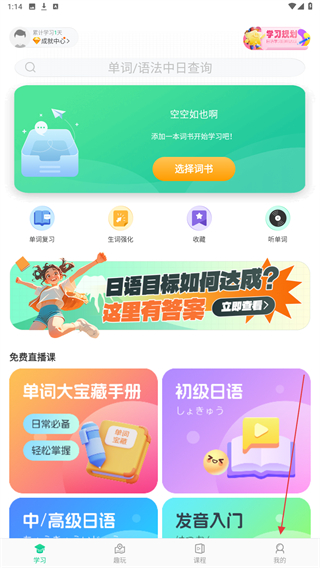 1.教材詞書(shū)無(wú)需從第1組開(kāi)始學(xué)習(xí),支持任選某課學(xué)習(xí)(記得去詞書(shū)庫(kù)查看哦)
