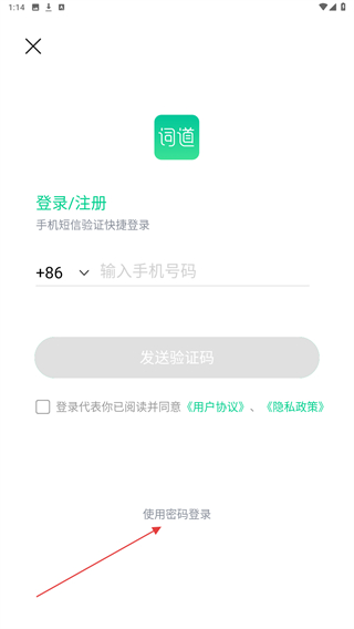 3、進(jìn)入登錄的頁(yè)面內(nèi),點(diǎn)擊下方使用密碼登錄的按鈕。