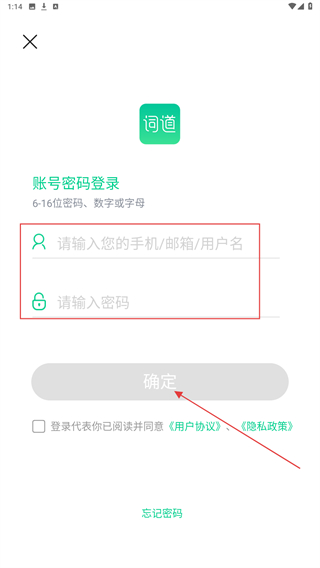 4、輸入手機(jī)/用戶名、密碼后,再點(diǎn)擊確定即可。