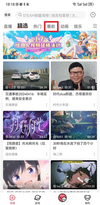 1、首先需要打開軟件在軟件的首頁界面中點擊其中的【番劇】進(jìn)入到該頻道界面;