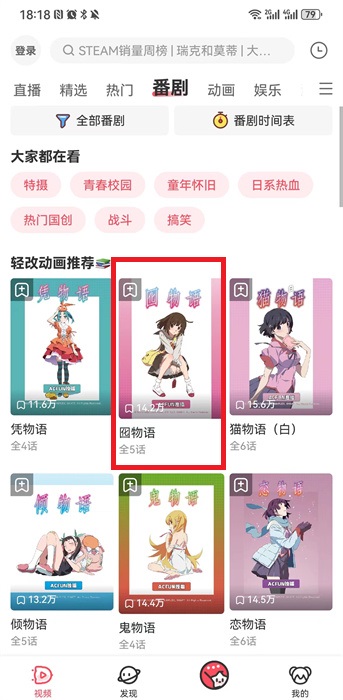2、在該頻道中,用戶可以找到自己想要下載的【作品】,點擊番劇進(jìn)入到播放界面之中;
