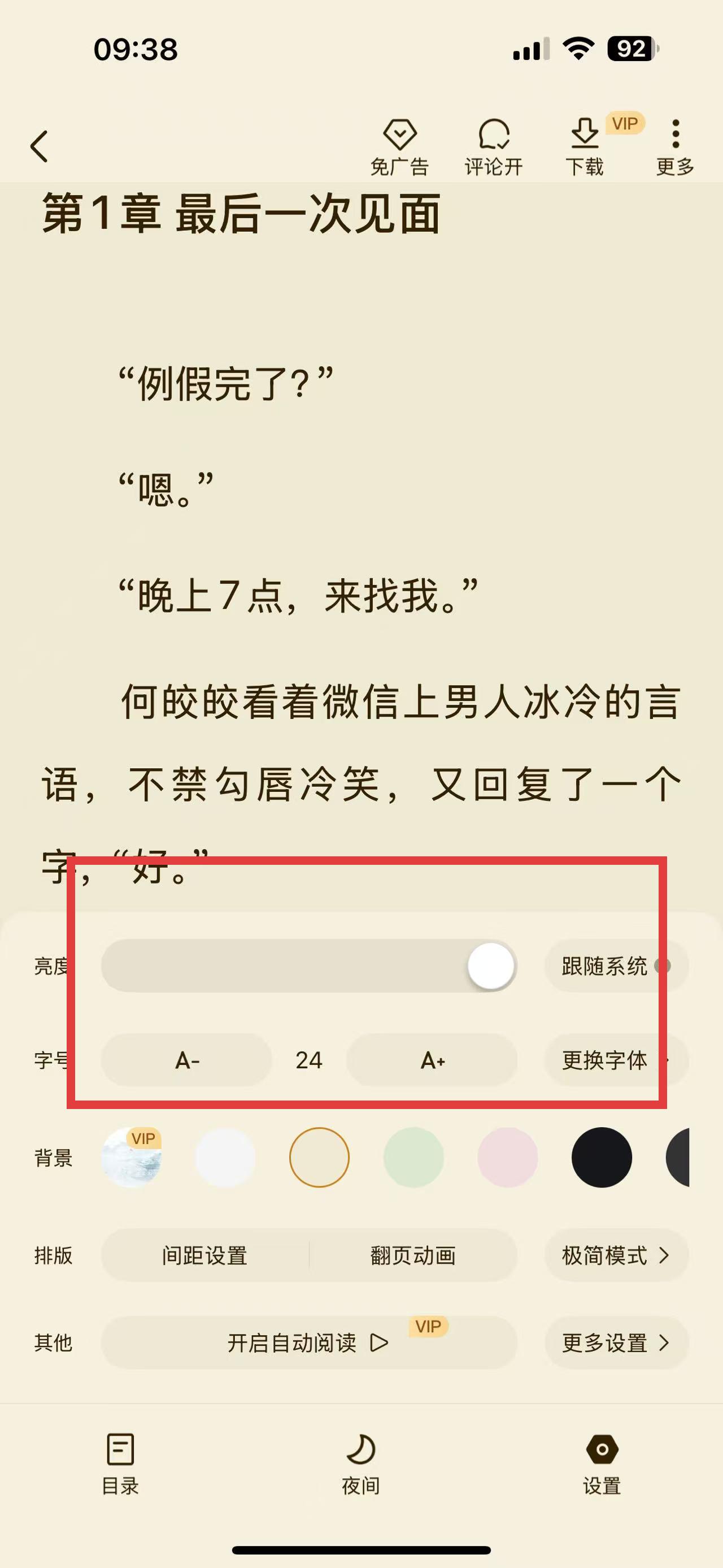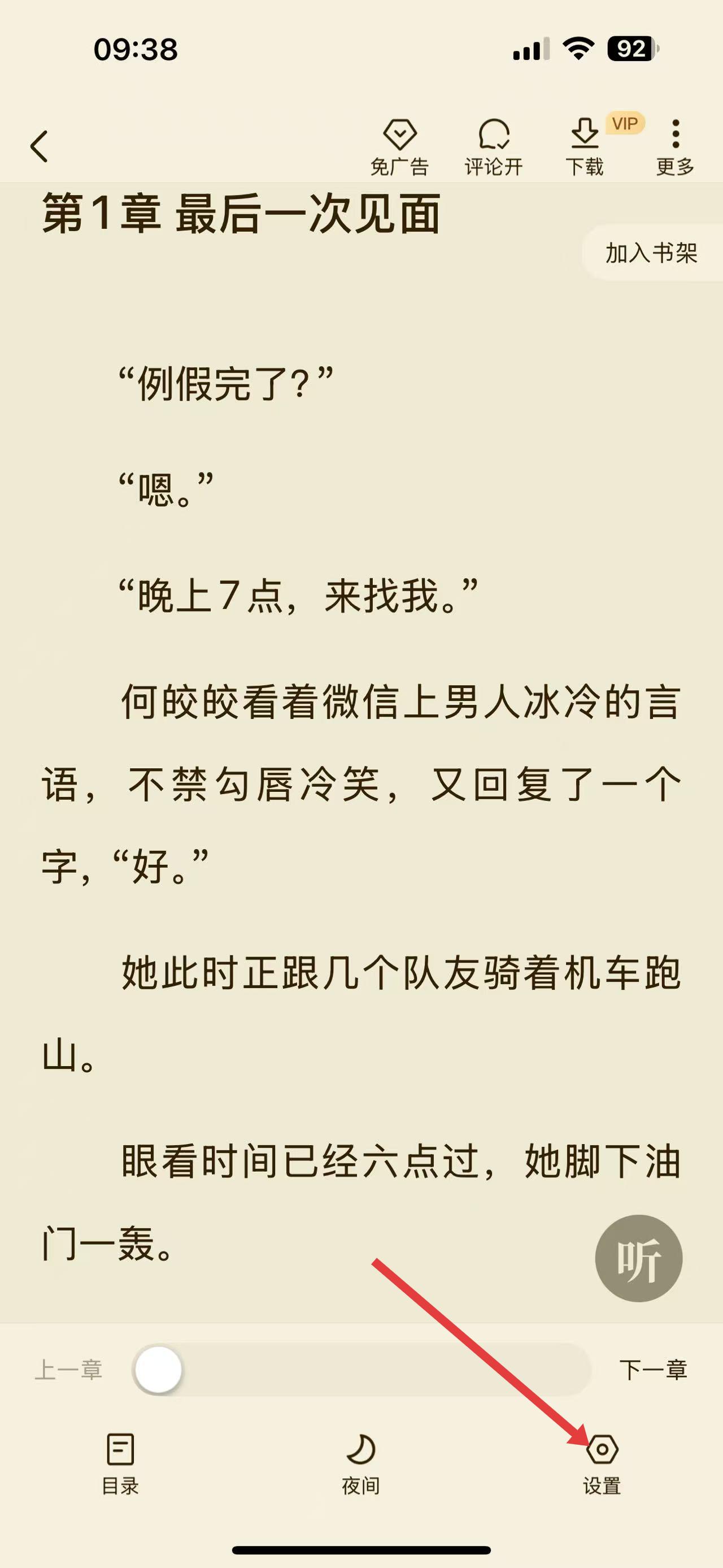 2、進(jìn)入閱讀界面點(diǎn)屏幕喚操作欄,找到并點(diǎn)擊設(shè)置按鈕進(jìn)入設(shè)置界面。