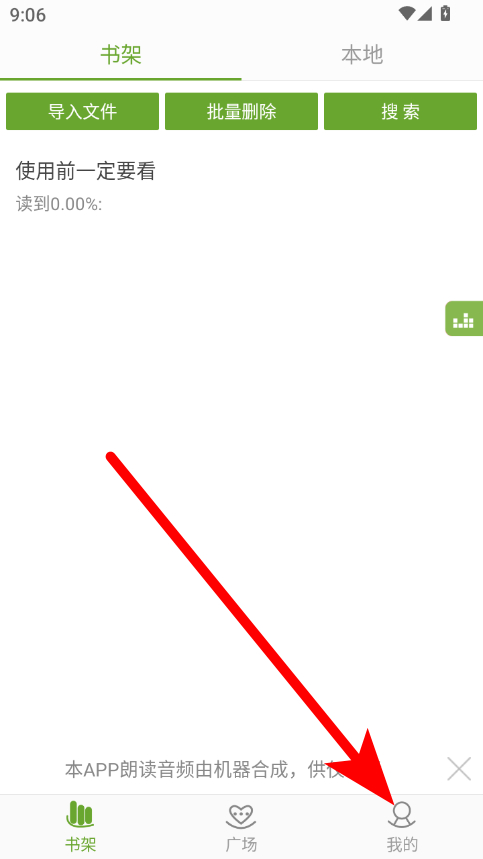 1、在txt文本聽書書架頁面,點擊右下角我的選項,進入個人界面。