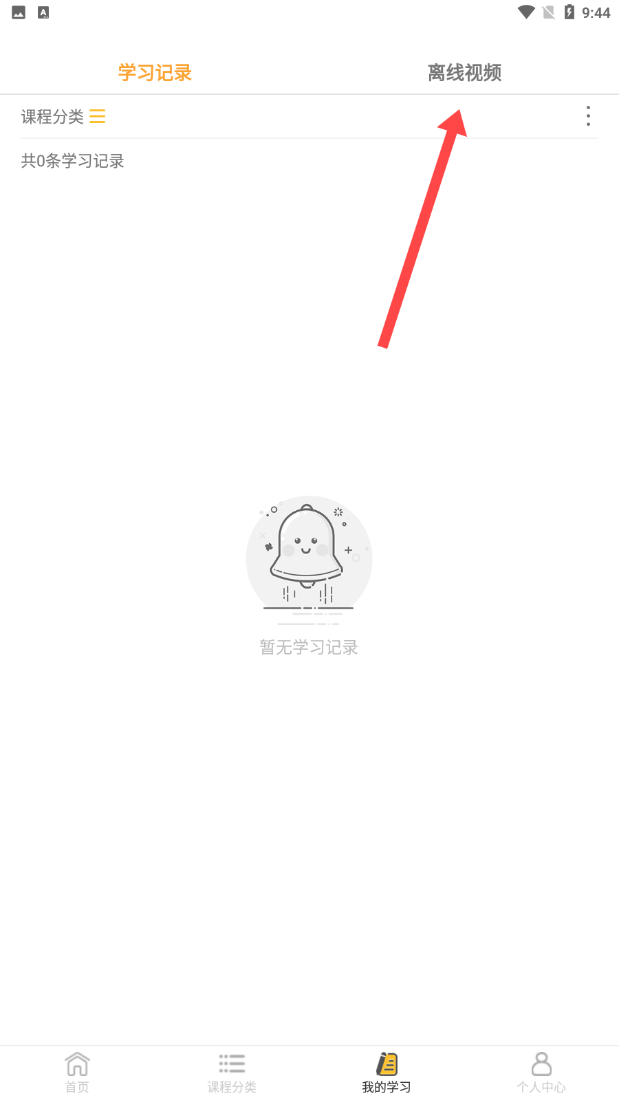 3、進(jìn)入我的學(xué)習(xí)界面,頂部有學(xué)習(xí)記錄和離線視頻兩個標(biāo)簽,方便管理學(xué)習(xí)軌跡,查看離線資源。