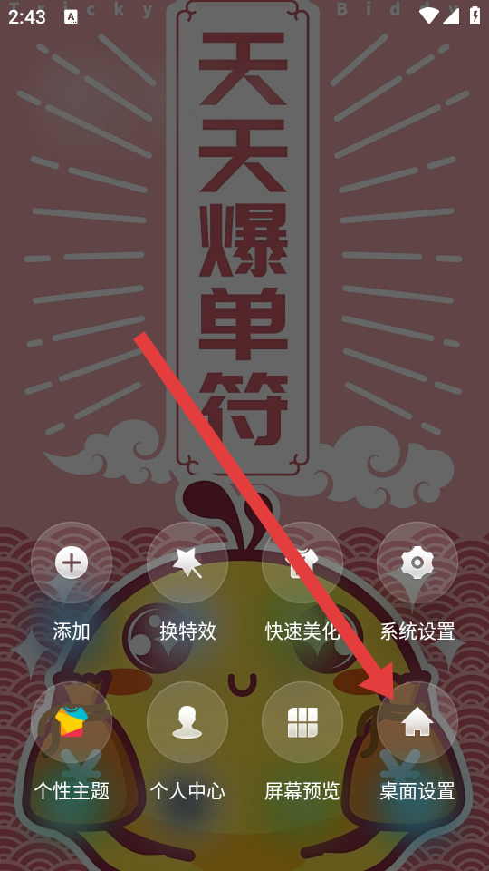 2、在彈出的操作菜單中,需要點擊桌面設置的選項,進入桌面設置界面。