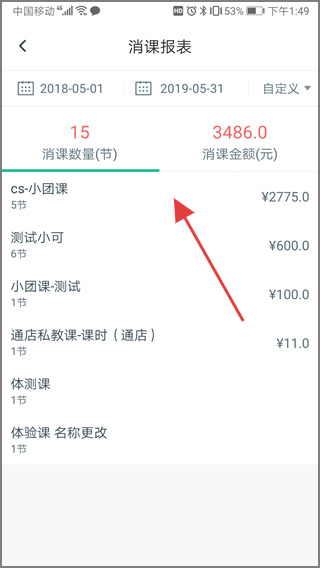 3、選擇好日期范圍后,即可查看對應(yīng)的消課報(bào)表。