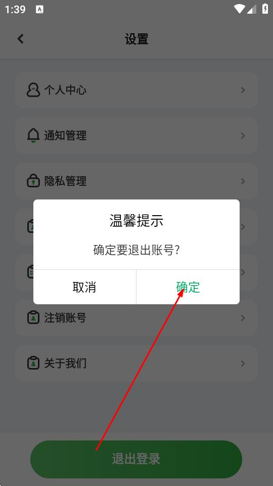 4、在彈出的溫馨提示窗口中,點擊確定按鈕,完成退出登錄操作。