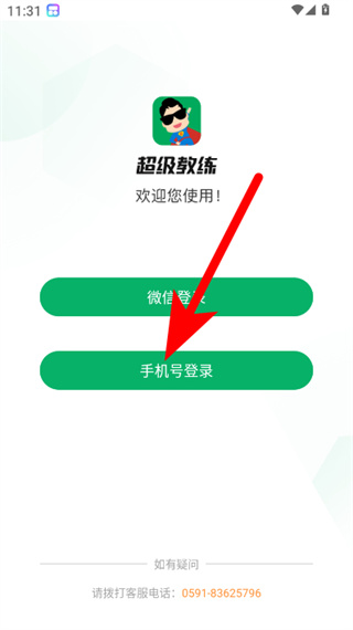 1、在超級教練登錄頁面,點擊手機號登錄選項,進入手機號登錄界面。