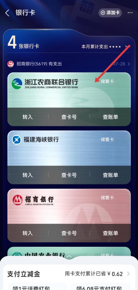 2、在個人中心列表中,找到并點擊銀行卡選項,進(jìn)入已綁定銀行卡的管理頁面,查看所有綁定的銀行卡信息。