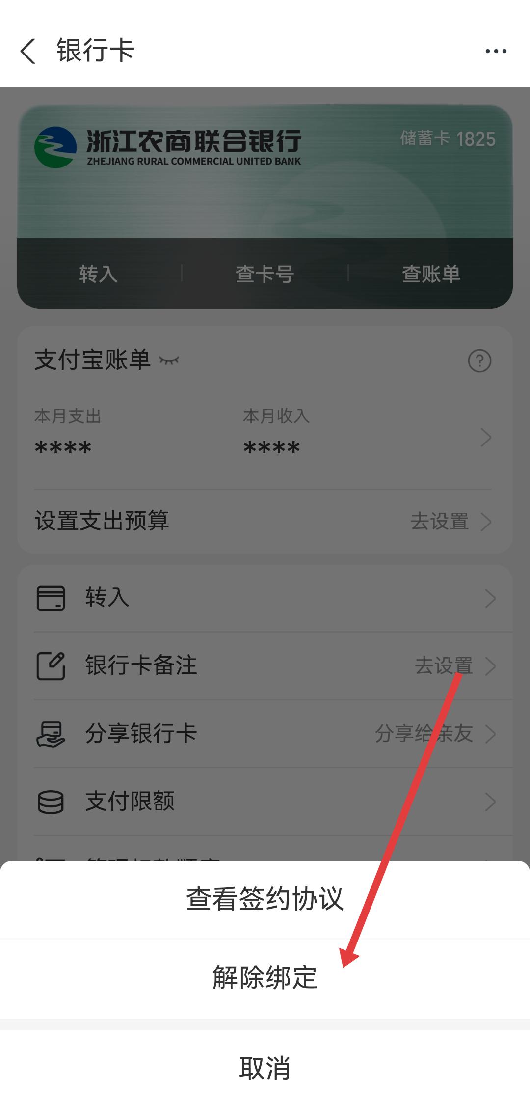 3、在銀行卡列表里,點擊需要解綁的目標(biāo)銀行卡,進(jìn)入該卡的詳情頁面,點擊右上角的...彈出解綁的操作界面。