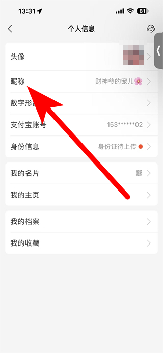 3、在個人信息頁面點擊昵稱,進(jìn)入昵稱修改頁面。