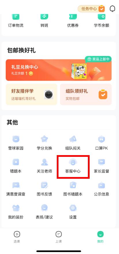 2、在個(gè)人頁面其他板塊中,找到并點(diǎn)擊客服中心選項(xiàng)。