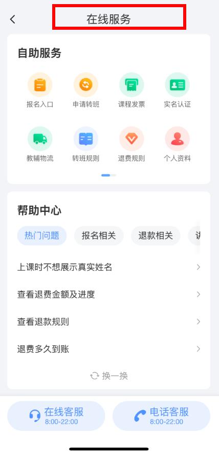3、進(jìn)入在線服務(wù)頁面后,頁面底部設(shè)有在線客服和電話客服,可按需選擇相應(yīng)方式聯(lián)系客服。