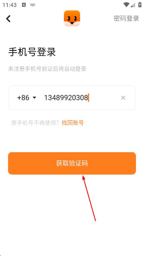 2、在登錄界面,選擇手機(jī)號(hào)登錄,輸入要使用的手機(jī)號(hào)碼,然后點(diǎn)擊“獲取驗(yàn)證碼”按鈕,準(zhǔn)備接收驗(yàn)證碼進(jìn)行登錄驗(yàn)證。