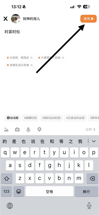 4、內(nèi)容編輯完成后,點(diǎn)擊右上角的發(fā)布按鈕,即可成功發(fā)布動(dòng)態(tài)。
