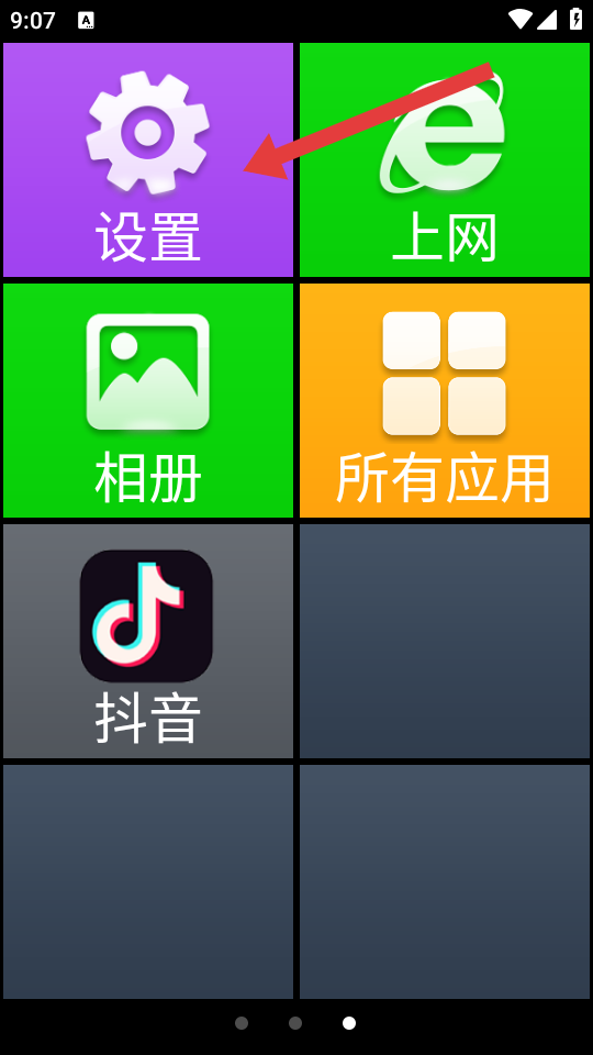 1、在如意老人桌面的主界面,點(diǎn)擊紫色背景的設(shè)置圖標(biāo),進(jìn)入設(shè)置的頁(yè)面。