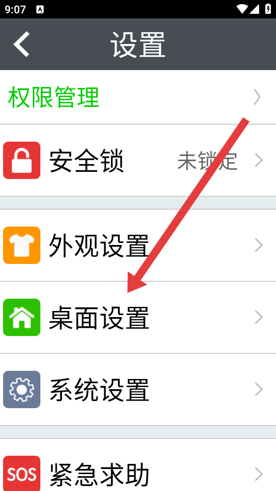 2、在設(shè)置頁(yè)面中,找到并點(diǎn)擊桌面設(shè)置的選項(xiàng),進(jìn)入桌面設(shè)置界面。