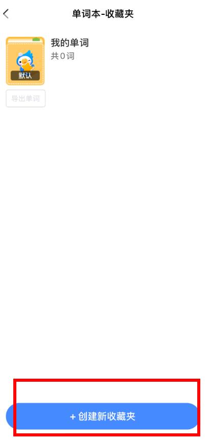 3、進(jìn)入單詞本-收藏夾頁(yè)面后,點(diǎn)擊下方+創(chuàng)建新收藏夾按鈕,即可創(chuàng)建新的收藏夾。
