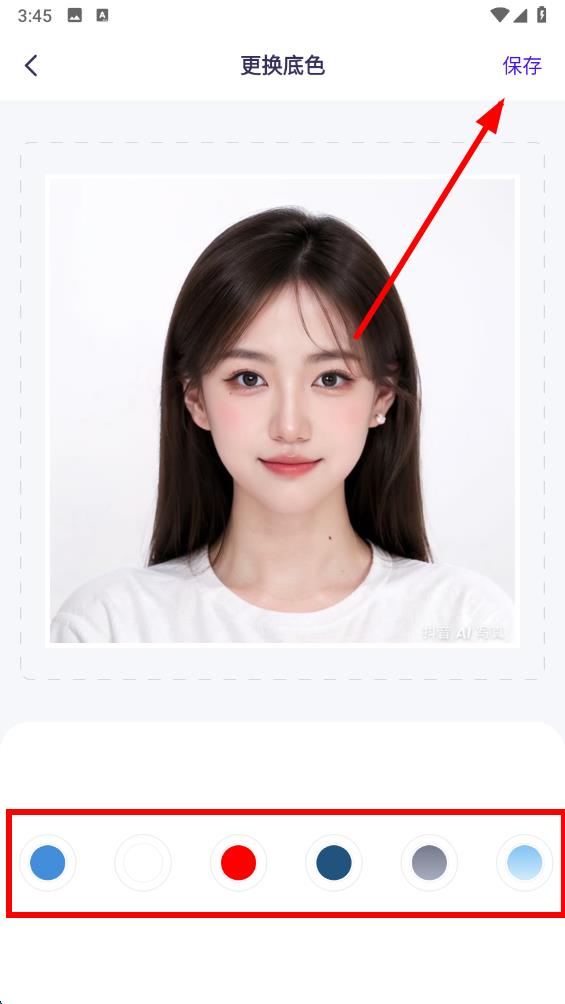 4、在更換底色操作界面下方,選擇想要的底色后,點(diǎn)擊右上角保存按鈕,完成底色更換。