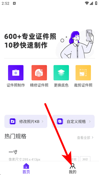 1、打開最美證件照制作App,點(diǎn)擊底部導(dǎo)航欄的我的選項(xiàng),進(jìn)入個人頁面。