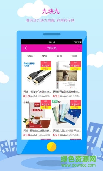4、九塊九特賣,每天都有低價(jià)特賣商品,最低低至一元包郵哦?讓您花更少的錢,買更多的寶貝,放心買買買。
