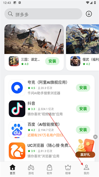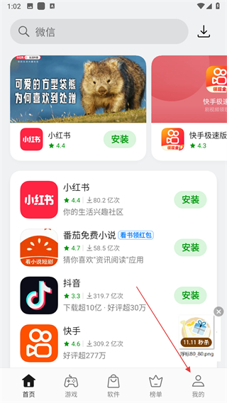 1、打開(kāi)OPPO軟件商店,點(diǎn)擊右下角我的。