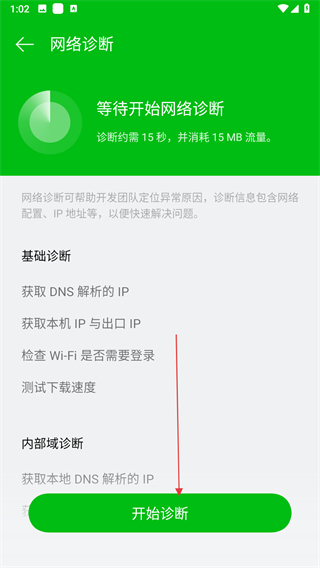 4、在網(wǎng)絡(luò)診斷頁(yè)面,點(diǎn)擊開(kāi)始診斷。