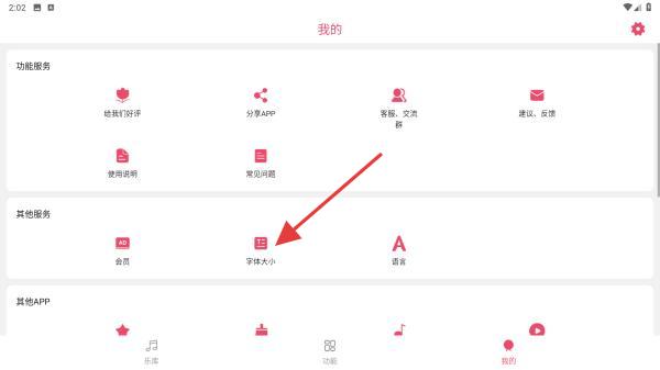 2、在我的頁面的向下滑動找到其他服務(wù),點擊字體大小的選項,跳轉(zhuǎn)至字體設(shè)置界面。