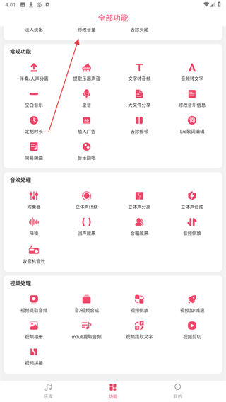2、在全部功能的頁面內(nèi),點擊上方修改音量的按鈕。