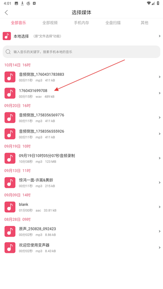 4、進(jìn)入導(dǎo)入的頁面內(nèi),選擇并點擊修改的音頻。