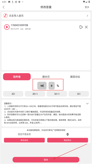 5、進(jìn)入修改音量的頁面內(nèi),修改后點擊保存即可。