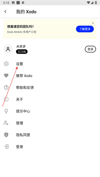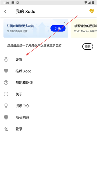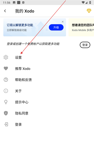 2、在我的Xodo頁面中,點擊設(shè)置選項,進入詳細設(shè)置界面。