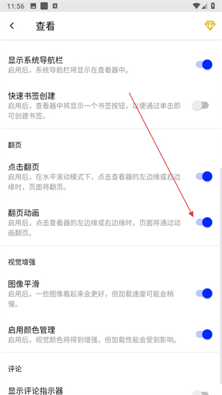 4、找到翻頁動畫選項,點擊其開關(guān)。