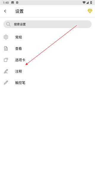 3、進入設(shè)置頁面后,找到并點擊注釋,進入注釋設(shè)置頁面。