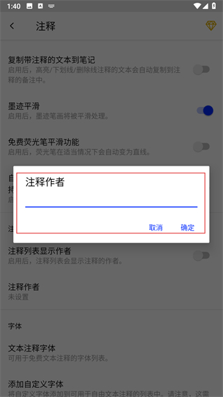 5、在彈出的注釋作者輸入框中,填寫作者名稱,完成后點擊確定。