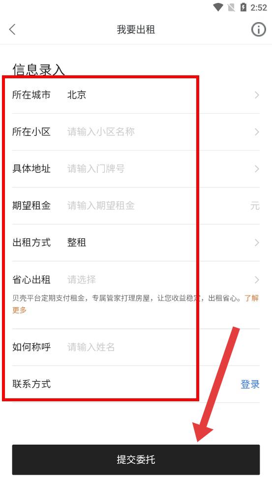 2、進(jìn)入信息錄入頁面,依次填寫信息,填寫完點擊提交委托。