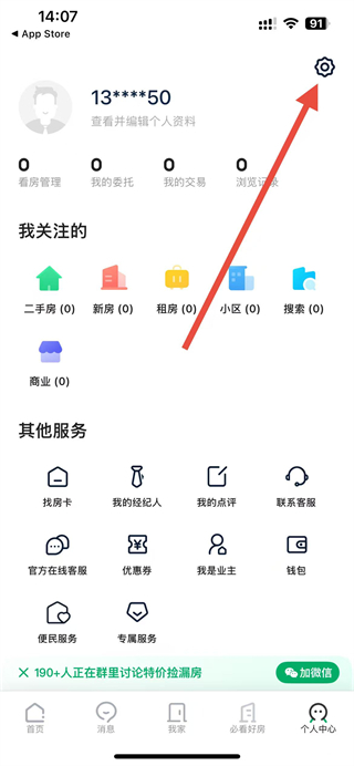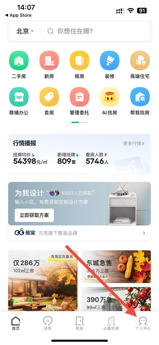 1、打開鏈家APP,點擊右下角個人中心選項。