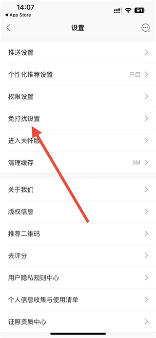 3、進(jìn)入設(shè)置頁面后,點擊免打擾設(shè)置選項。
