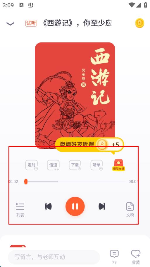 4、進(jìn)入試聽(tīng)播放界面,就可以免費(fèi)收聽(tīng)部分內(nèi)容了,能使用定時(shí)、倍速、下載等功能。