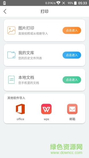 支持常用文件格式(JPG/JPEG/GIF/BMP/PNG | DOC/DOCX/PPT/PPTX/PDF……),通過手機打印本地文件,并可通過第三方APP或云端直接選取文件打印。免除了傳統(tǒng)U盤拷貝或文件不在本地的困擾。