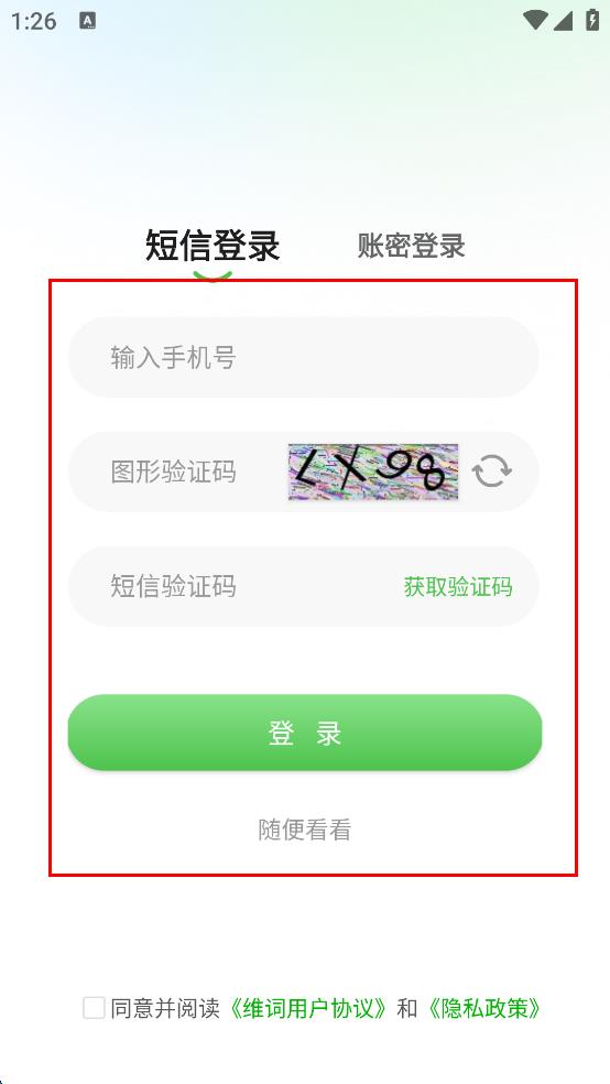 4、先在輸入框中輸入手機(jī)號(hào),接著在輸入框中輸入對(duì)應(yīng)的圖形驗(yàn)證碼,然后點(diǎn)擊“獲取驗(yàn)證碼”按鈕,待收到短信驗(yàn)證碼后,在輸入框中輸入驗(yàn)證碼,最后點(diǎn)擊“登錄”按鈕。