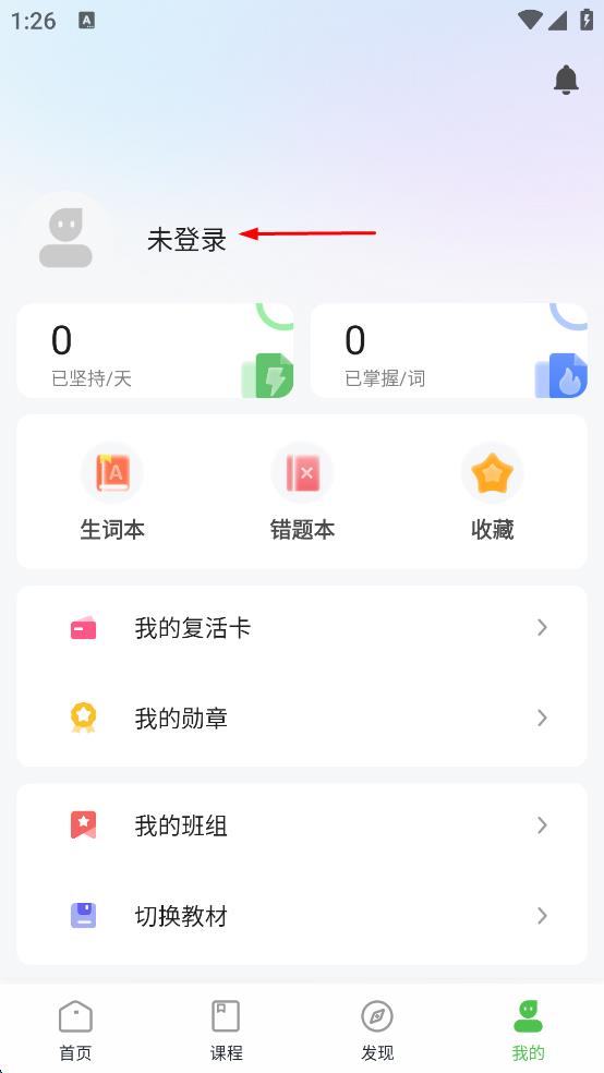 3、在“我的”頁(yè)面,點(diǎn)擊“未登錄”區(qū)域,進(jìn)入登錄頁(yè)面。