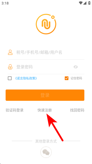 1、打開諾言APP的登錄界面,我們需要點擊快速注冊。