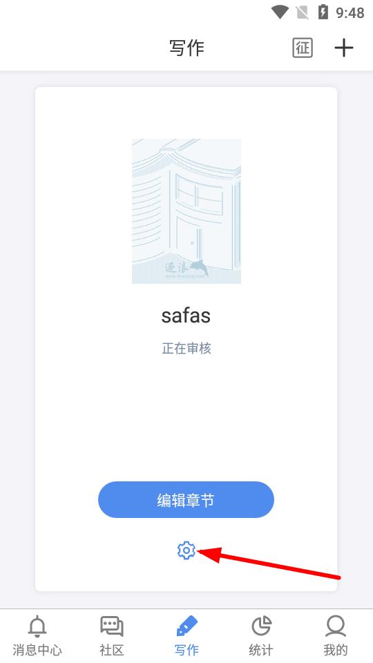 2、在寫作頁面中找到需要修改的作品,點擊作品下方的齒輪圖標進入作品設置。