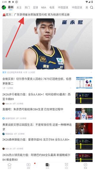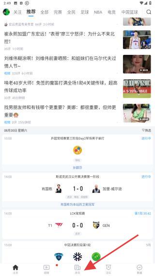 1、打開直播吧App,點(diǎn)擊底部導(dǎo)航欄中間的資訊圖標(biāo)即可跳轉(zhuǎn)至該頁面。