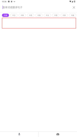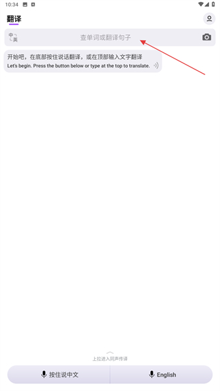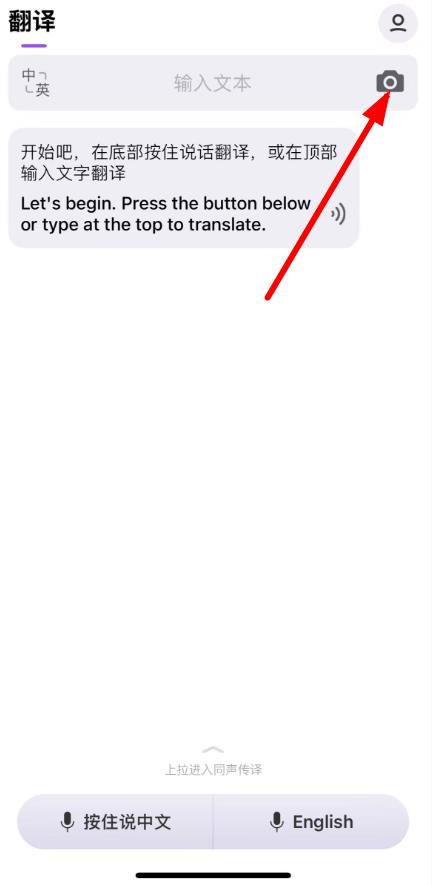 1、打開騰訊翻譯君進(jìn)入翻譯界面,點(diǎn)擊輸入文本框右側(cè)的相機(jī)圖標(biāo)。