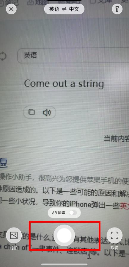 2、進(jìn)入拍攝界面后,對(duì)準(zhǔn)需要翻譯的文本進(jìn)行拍攝,調(diào)整畫面使文本清晰顯示在取景框內(nèi),點(diǎn)擊拍攝按鈕。