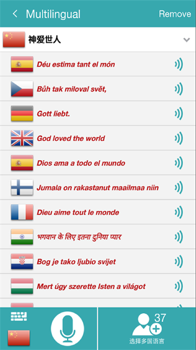 支持多個國家和地區(qū)語言翻譯