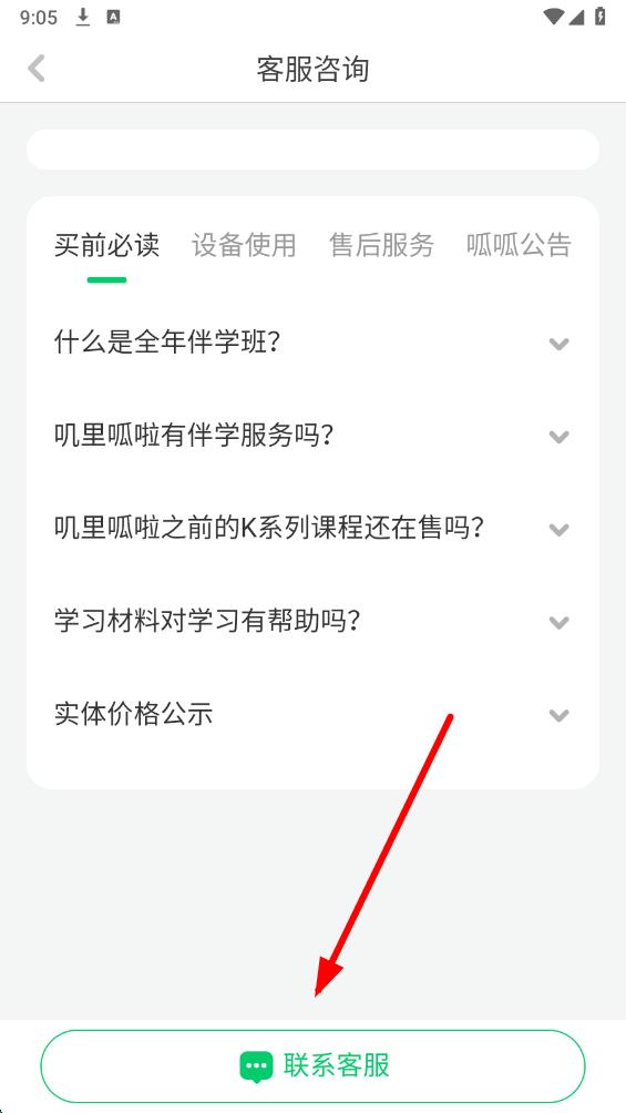 3、進入客服咨詢界面后,點擊頁面底部的聯(lián)系客服按鈕,即可與客服取得聯(lián)系。